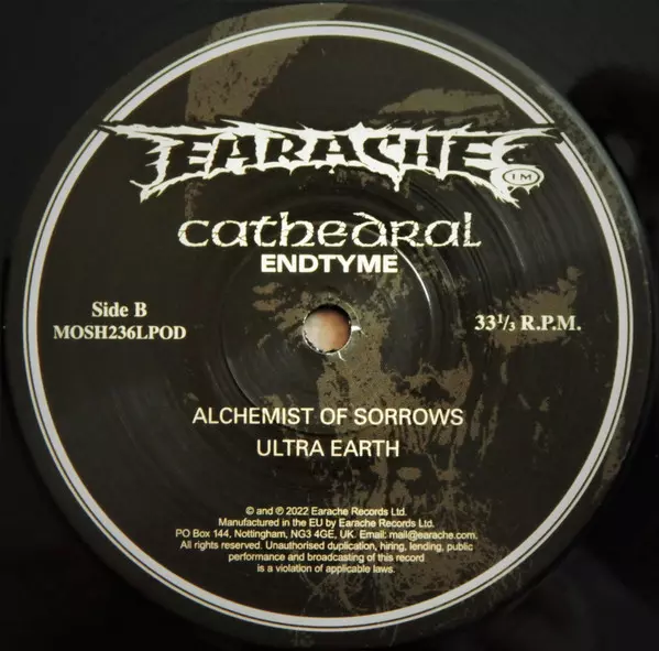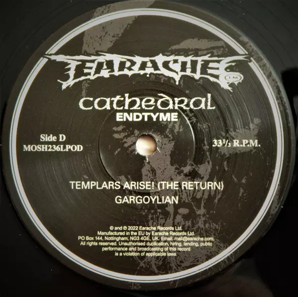 Cathedral: Endtyme verzia na vinylu 2LP v štandardný edícii. Toto konkrétne vydanie vyšlo v Velké Británii vo vydavateľstve Earache dňa 18. augusta 2023. Album zasahuje do žánrov Rock a Doom metal.