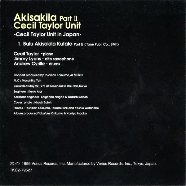 | Názov | Akisakila Part II - Cecil Taylor Unit In Japan |