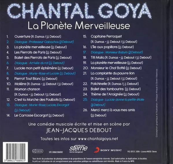 Chantal Goya: La Planète Merveilleuse verzia na CD v remasterované edícii. Toto konkrétne vydanie vyšlo v Francii vo vydavateľstve Sterne dňa 12. novembra 2013. Album zasahuje do žánrov Pop, Stage & Screen, Detské, Chanson a Music Hall.