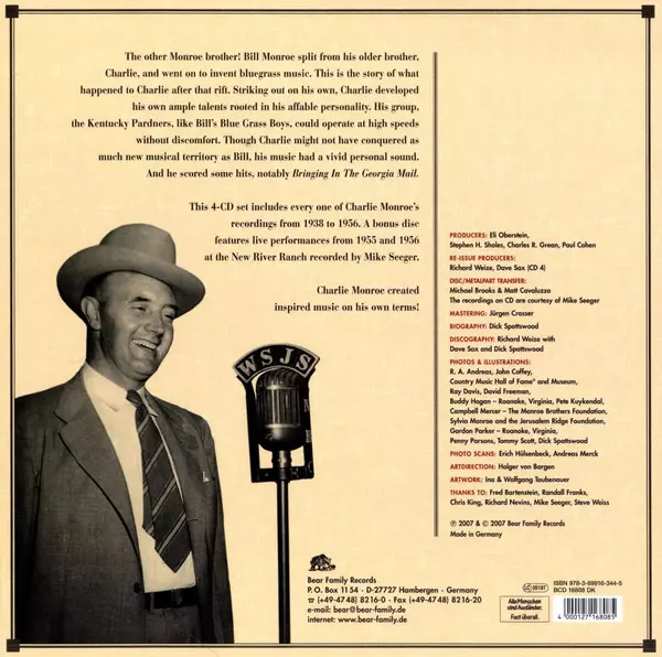 Charlie Monroe: I'm Old Kentucky Bound verzia na 4CD v štandardný edícii. Toto konkrétne vydanie vyšlo v Německu vo vydavateľstve Bear Family Records dňa 11. marca 2011. Album možno zaradiť do žánru Folk, World, & Country. 4 CD + Buch.