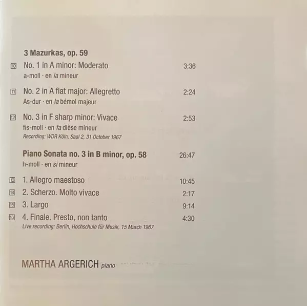 | Interpret | Frédéric Chopin | Martha Argerich |
