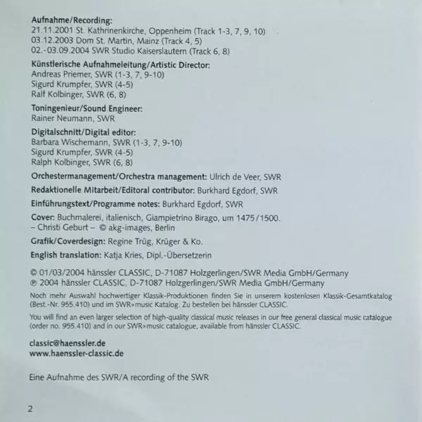 Hänssler Classic | SWR Music 1. augusta 2004 Európa