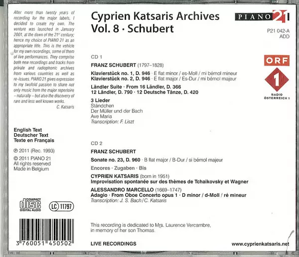 | Názov | Cyprien Katsaris Archives Vol.8 - Schubert |