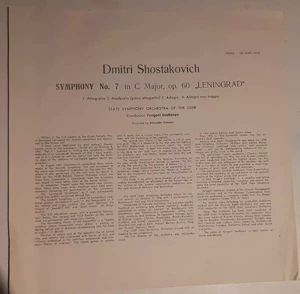 | Interpret | Dmitri Shostakovich | Russian State Symphony Orchestra | Evgeni Svetlanov |