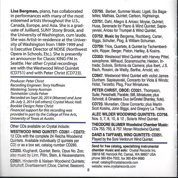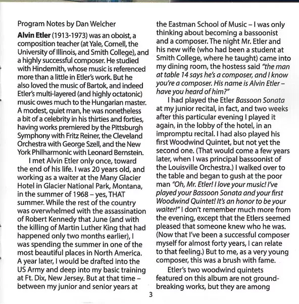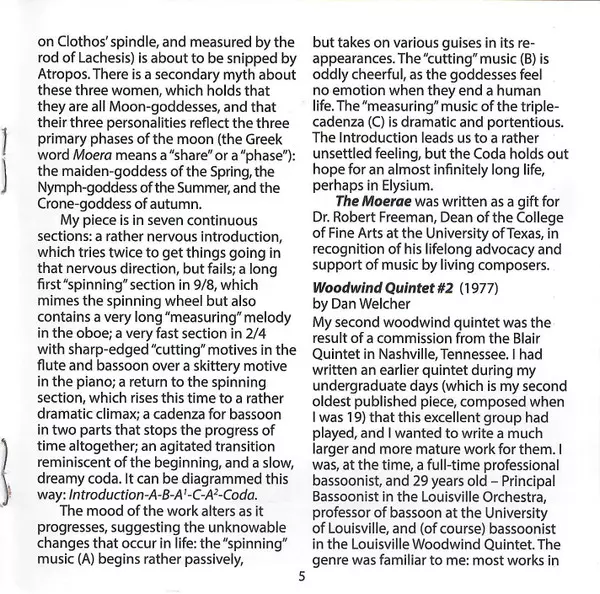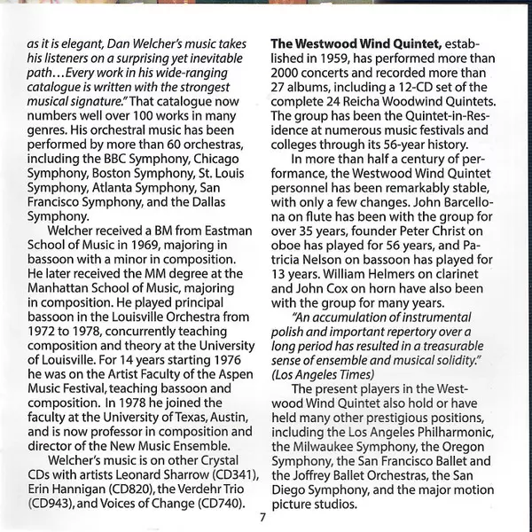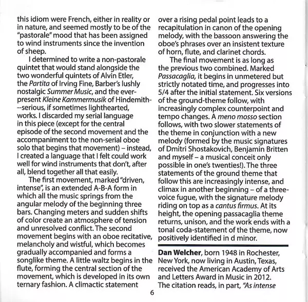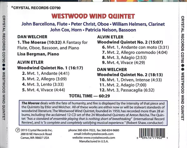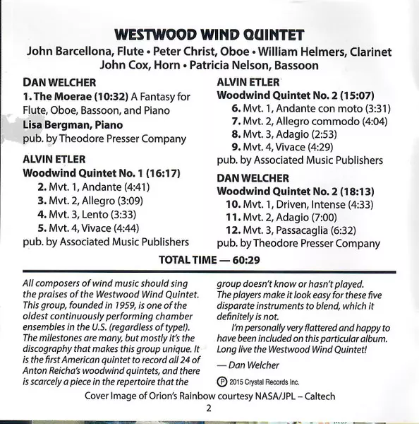 | Interpret | Dan Welcher | Westwood Wind Quintet | Alvin Etler | Lisa Bergman |