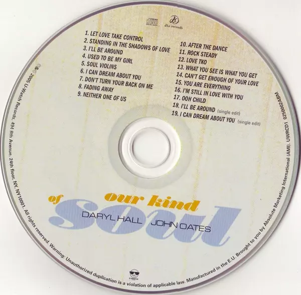 Daryl Hall & John Oates: Our Kind Of Soul verzia na CD v štandardný edícii. Toto konkrétne vydanie vyšlo v Evropě vo vydavateľstve U-Watch Records dňa 17. februára 2005. Album zasahuje do žánrov Rock, Pop, Funk / Soul, Pop Rock a Soul.