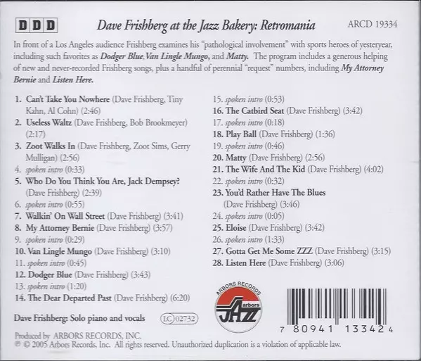 | Názov | Dave Frishberg At The Jazz Bakery: Retromania |