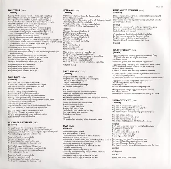 17. června 2022, 50 let a jeden den po původním datu vydání ve Velké Británii, vychází album "The Rise And Fall Of Ziggy Stardust And The Spiders From Mars" v limitované edici 50th Anniversary Half-Speed Mastered LP a picture disc se stejným masterem a replikou propagačního plakátu k albu. Tento nový výlisek alba "The Rise And Fall Of Ziggy Star...