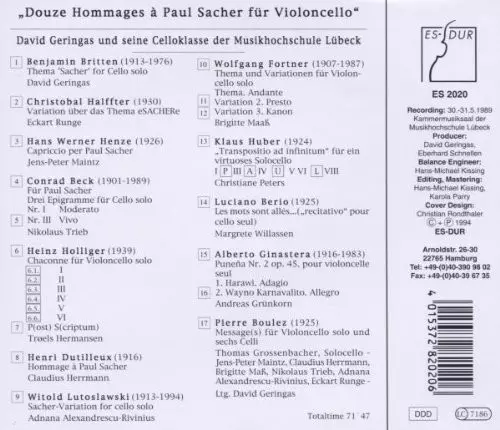CD 12 Hommages à Paul Sacher Pour Violoncelle