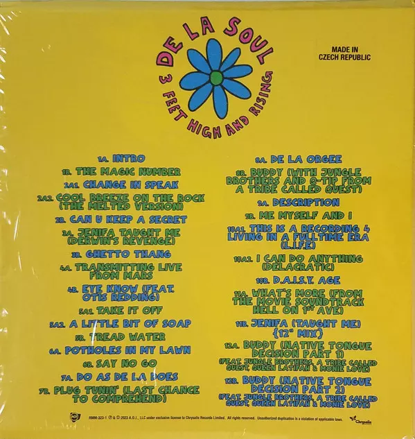 De La Soul: 3 Feet High And Rising CLR verzia na vinylu 12SP/Box Set v kolorované 45 RPM edícii. Toto konkrétne vydanie vyšlo v Worldwide vo vydavateľstve AOI Records v spolupráci s Chrysalis dňa 24. novembra 2023.