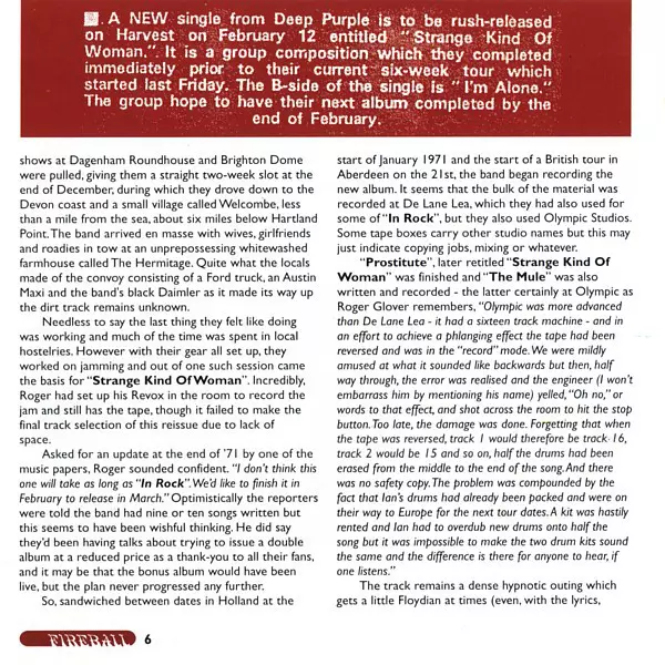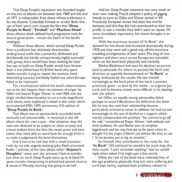 A milestone of hard and progressive rock The legendary British hard rock band released their fifth studio album "Fireball" 45 years ago. It was the second album by the classic MK-II line-up of singer Ian Gillan, Ritchie Blackmore on guitar, Jon Lord on Hammond organ, Roger Glover on bass and Ian Paice on drums. After releasing the groundbreaking...