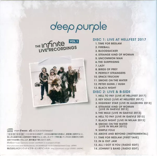 Deep Purple: The Infinite Live Recordings Vol.1 LTD verzia na 2CD v limitované edícii. Toto konkrétne vydanie vyšlo v Japonsku vo vydavateľstve Victor v spolupráci s Ear Music dňa 5. októbra 2018.