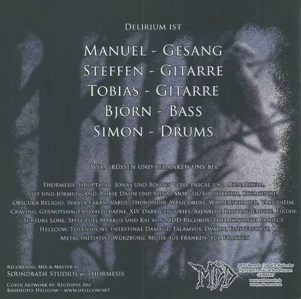 Delirium: Urkraft verzia na CD v štandardný edícii. Toto konkrétne vydanie vyšlo v Německu vo vydavateľstve MDD dňa 12. júla 2019. Album zasahuje do žánrov Rock, Black Metal, Viking Metal a Folk metal.