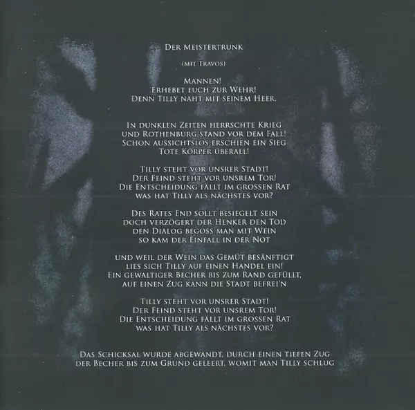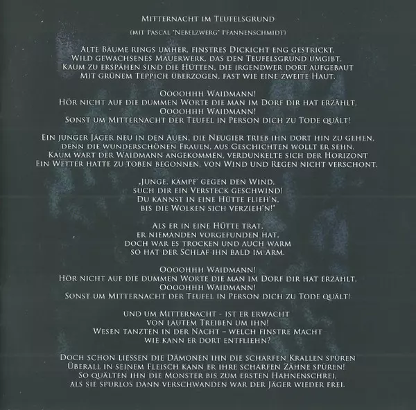 1 - Panzerreiter 2 - Mitternacht Im Teufelsgrund 3 - Der Schwarze Jobst II - Die Rache 4 - Der Meistertrunk 5 - Moosweibla 6 - Ewiglich In Stein 7 - Die Mühlhex 8 - Urkraft