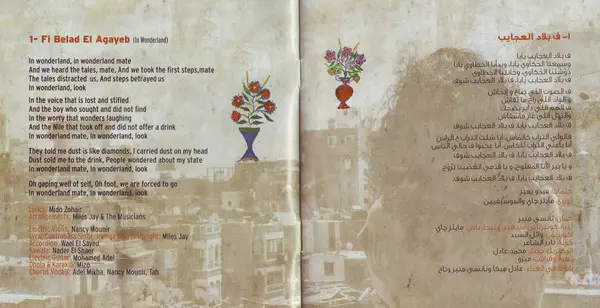 Accordion وائل السيد | Arranged By Miles Jay | Chorus تاح, عادل ميخا, نانسي منير | Dhol [Dhola], Percussion [Karakib] محمد جمال الدين | Electric Guitar محمد عادل | Electric Violin نانسي منير | Kaval نادر الشاعر | Lyre [Lyra], Contrabass, Sintir, Instruments [Inanga & Bass Upright] Miles Jay | Lyrics By ميدو زهير