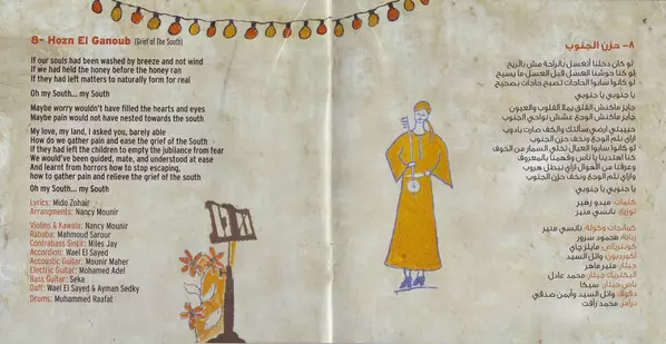 Accordion وائل السيد | Arranged By, Violin نانسي منير | Daf Miles Jay, محمد جمال الدين, وائل السيد | Flute [Arghoul] أمين شاهين | Instruments [Vocal Pads] نانسي منير | Kaval نادر الشاعر | Lyrics By جرجس شكري | Sintir [Contrabass Sintir] Miles Jay