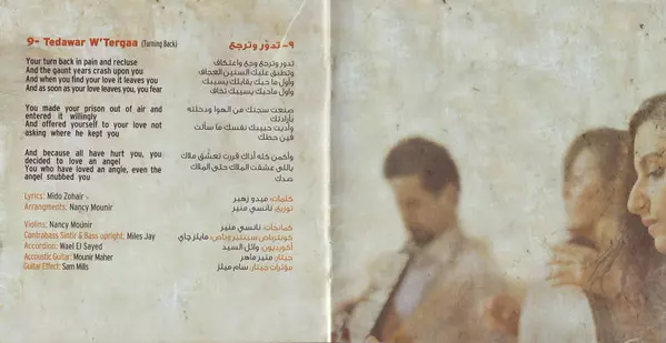 Accordion وائل السيد | Arranged By نانسي منير | Bass Guitar محمد سيكا | Daf, Tambourine [Riq] هاني بدير | Drums محمد رأفت | Electric Guitar محمد عادل | Electric Violin نانسي منير | Lyrics By منتصر حجازي