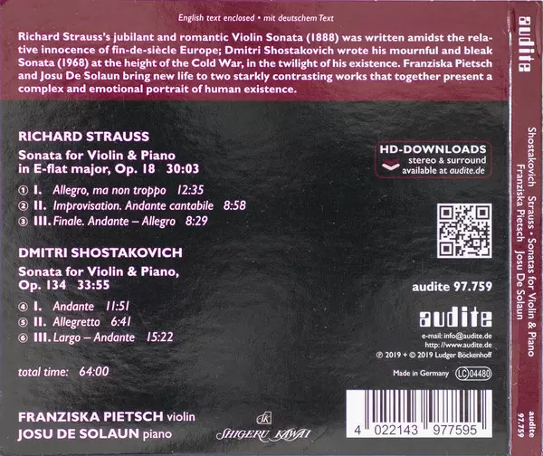 | Richard Strauss: Sonata For Violin & Piano In E-flat Major, Op. 18 = Sonate Es-Dur Für Violine Und Klavier Op. 18 | 30:03 min | |