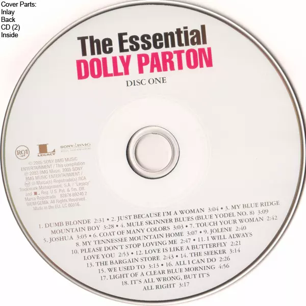 Dolly Parton: The Essential Dolly Parton verzia na 2CD v štandardný edícii. Toto konkrétne vydanie vyšlo v Evropě vo vydavateľstve Sony BMG Music Entertainment v spolupráci s RCA a Legacy dňa 28. júna 2005.