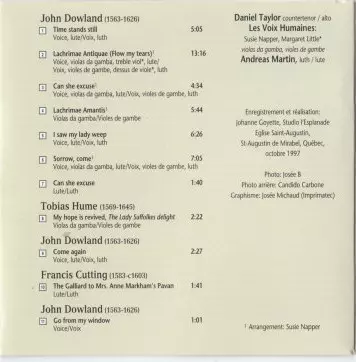 | Interpret | John Dowland | Daniel Taylor | Les Voix Humaines | Andreas Martin |