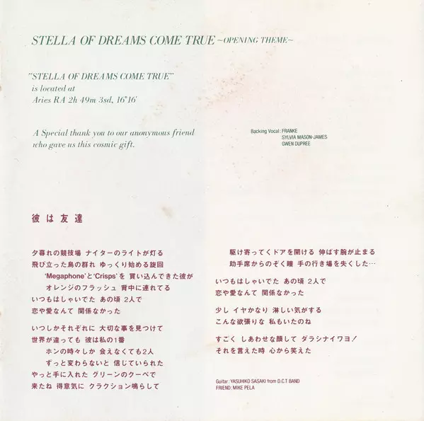 Backing Vocals Franke (4), Gwen Dupree, Sylvia Mason-James | Music By, Arranged By Masato Nakamura (2) | Words By Mike Pela, Miwa Yoshida, Yanchi