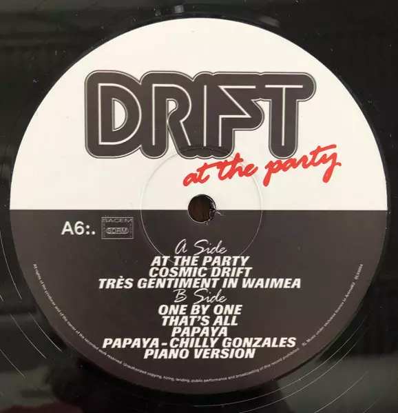 Drift: At the Party verzia na vinylu 2LP v štandardný edícii. Toto konkrétne vydanie vyšlo v Worldwide vo vydavateľstve Animal63 dňa 6. júna 2025. Album zasahuje do žánrov Pop, Elektronická hudba, Jazz a Indie Pop. Black Vinyl 2LP.