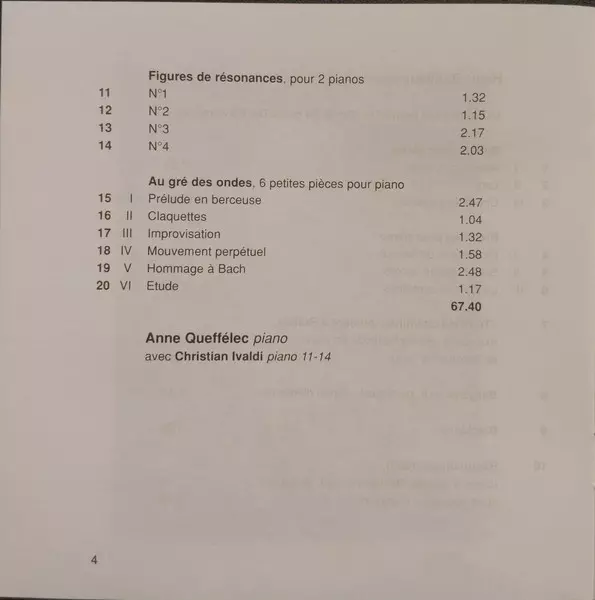 | Interpret | Anne Queffélec | Henri Dutilleux |