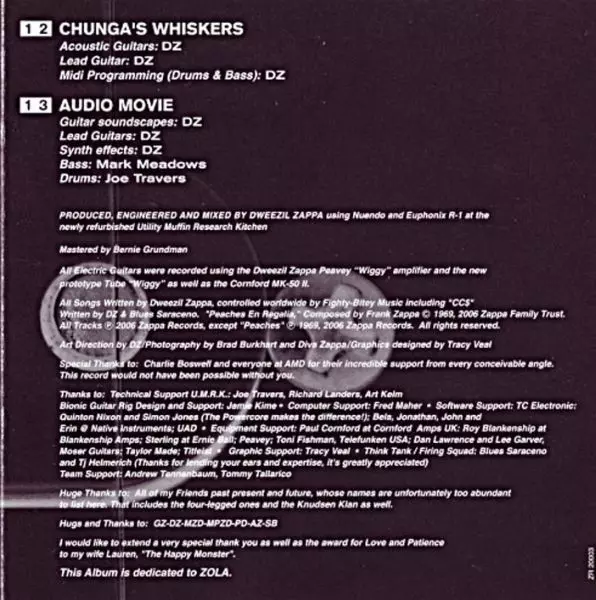 Bass Scott Thunes | Drums Terry Bozzio | Guitar [All Guitars], Programmed By [Orchestral Programming] Dweezil Zappa