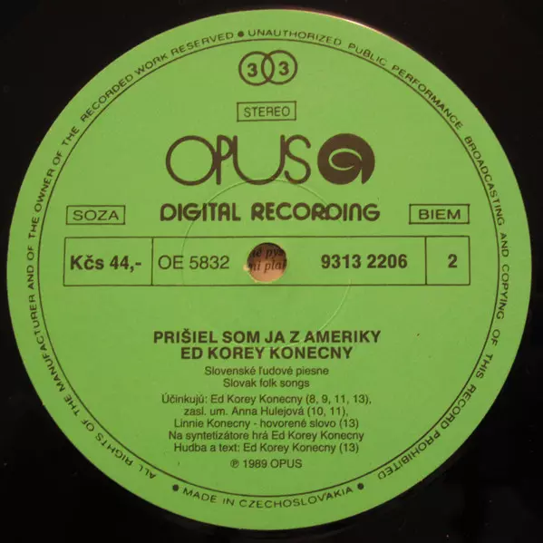 Ed Korey Konecny: Prišiel Som Ja Z Ameriky verzia na vinylu LP v štandardný edícii. Toto konkrétne vydanie vyšlo v Československu vo vydavateľstve Opus roka 1990. Album možno zaradiť do žánru Folk, World, & Country.