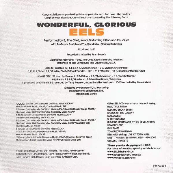 Eels: Wonderful, Glorious DLX | LTD | DIGI verzia na 2CD v deluxe limitované digipack edícii. Toto konkrétne vydanie vyšlo v Evropě vo vydavateľstve Cooperative Music v spolupráci s E Works Records dňa 1. februára 2013. Album zasahuje do žánrov Rock a Indie Rock. Digipack Deluxe Limited Edition.
