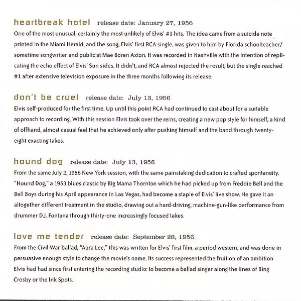 | 1 | Elvis Presley: Heartbreak Hotel | 2:09 min | |