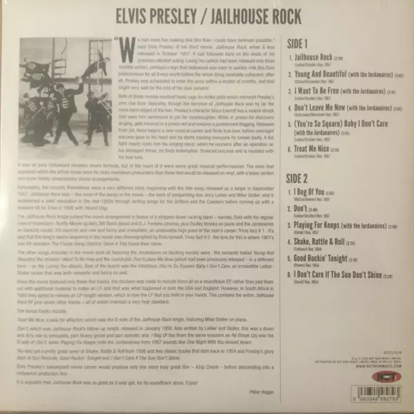 "Pri nakrúcaní tohto filmu sme sa bavili viac, ako som si myslel, že je možné," povedal Elvis Presley o svojom treťom filme Jailhouse Rock, keď bol v októbri 1957 uvedený do kín. Keďže vo filme bolo len päť piesní, rozhodlo sa, že sa nahrajú ako EP soundtrack. V Južnej Afrike sa však v roku 1958 rozhodlo o vydaní LP verzie. Obsahuje celé EP Jail...
