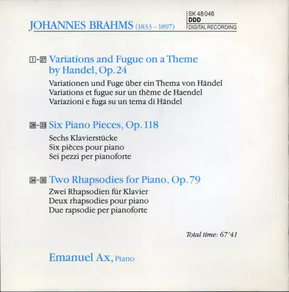 | Interpret | Johannes Brahms | Emanuel Ax |