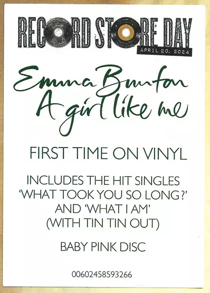Emma Bunton: A Girl Like Me CLR verzia na vinylu LP v kolorované edícii. Toto konkrétne vydanie vyšlo v Evropě vo vydavateľstve Universal Music Recordings v spolupráci s EMI dňa 20. apríla 2024. Album zasahuje do žánrov Rock, Pop, Elektronická hudba, Pop Rock a Synth-pop.