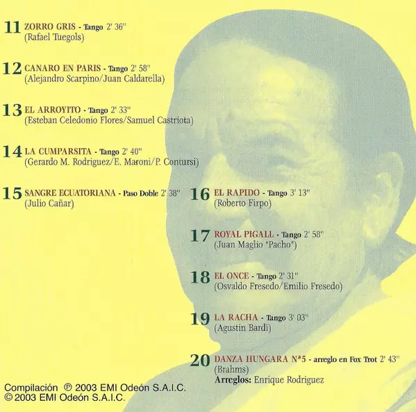 Argentinian tango orchestra. At some stage, integrated 3 female singers: María Luisa Notar, Dorita Zárate and Loretta Darthés.