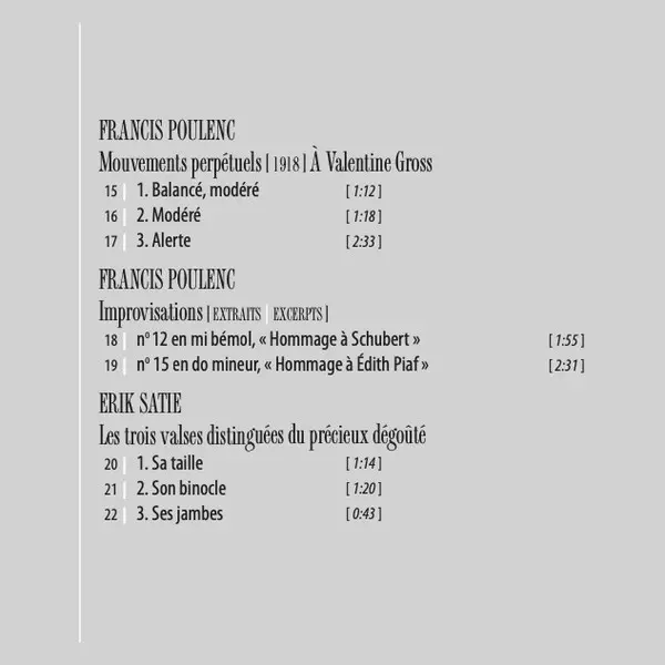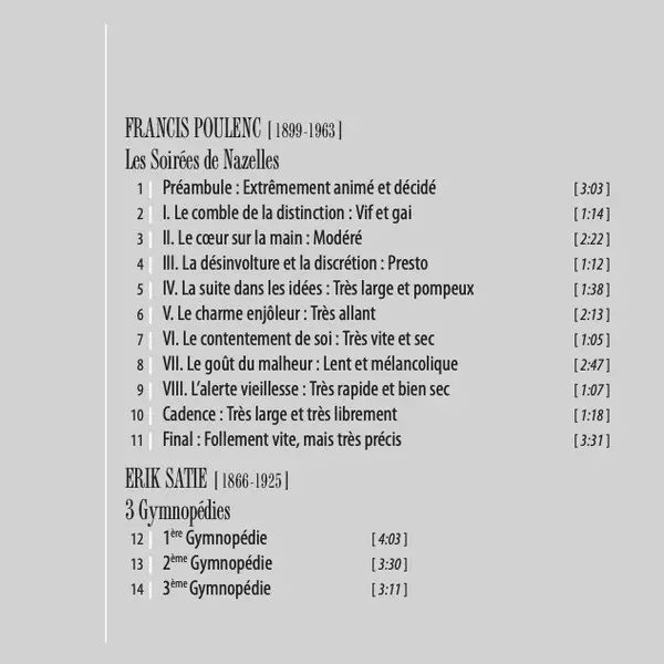 | Interpret | Erik Satie | Francis Poulenc | David Jalbert |