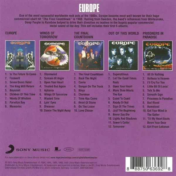 Informácie o produkte Europe, jedna z najúspešnejších rockových skupín 80. rokov 20. storočia, sa najviac preslávila svojím obrovským komerčným hitom The Final Countdown z roku 1986. Kapela pochádza zo Švédska a jej vplyvy od Whitesnake, Deep Purple a Rainbow jej pomohli stať sa lídrom vtedy nesmierne populárneho komerčného metalového zvuku. Ten...