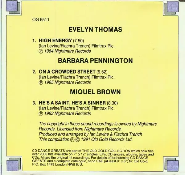 | Interpret | Evelyn Thomas | Miquel Brown | Barbara Pennington |