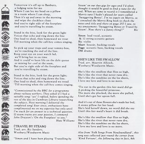 Bass, Backing Vocals Dave Pegg | Drums Dave Mattacks | Guitar [Bouzàr], Accordion, Tambourine, Backing Vocals Martin Allcock | Lead Vocals, Acoustic Guitar Simon Nicol | Violin Ric Sanders | Written-By Steve Tilston