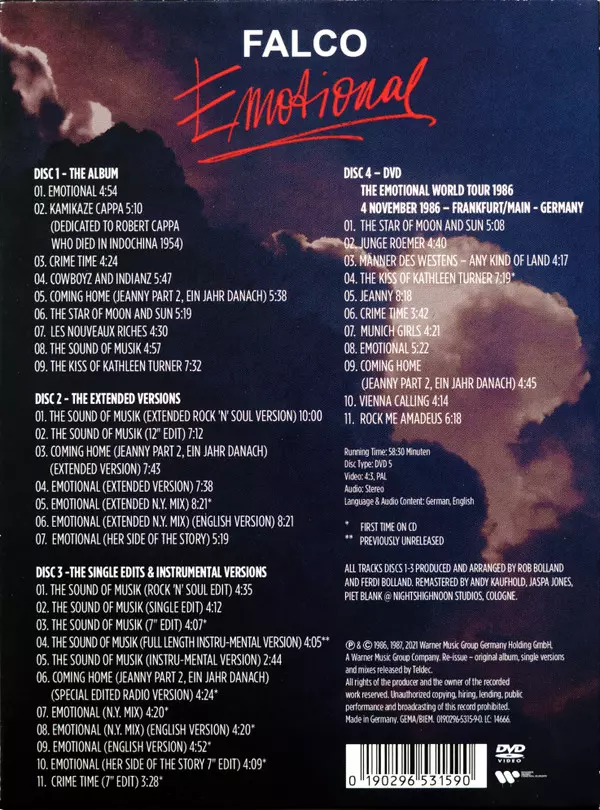 Falco: Emotional DLX | LTD verzia na 3CD/DVD/Box Set v remasterované deluxe limitované edícii. Toto konkrétne vydanie vyšlo v Evropě vo vydavateľstve Warner Music Central Europe dňa 26. novembra 2021.