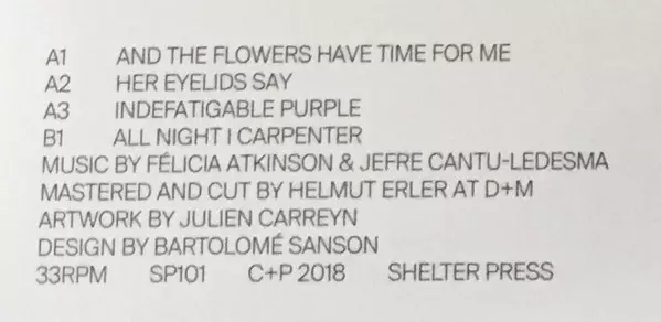 | Interpret | Jefre Cantu-Ledesma | Félicia Atkinson |