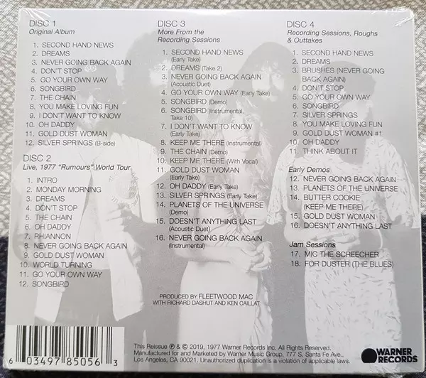 Fleetwood Mac: Rumours DLX verzia na 4CD v remasterované deluxe edícii. Toto konkrétne vydanie vyšlo v Evropě, USA a Kanadě vo vydavateľstve Warner Records dňa 8. novembra 2019.