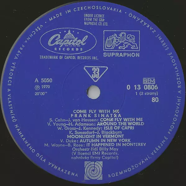 | Vydavateľstvo | Supraphon | Gramofonový Klub | Capitol Records |