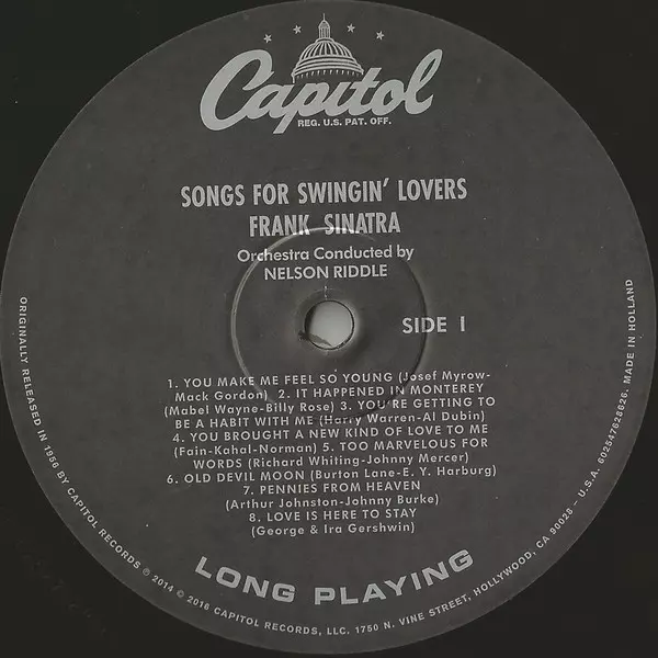 Frank Sinatra "Songs for Swingin' Lovers!" was released in 1956 and is one of his most popular albums. The album features classic swing and big band arrangements of popular standards such as "I've Got You Under My Skin", "The Lady Is a Tramp" and "That Old Black Magic". The album was recorded with a large orchestra and Sinatra's signature vocal ...