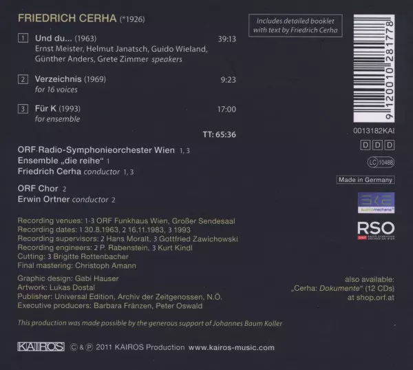 Interpret | Friedrich Cerha | ORF Radio-Symphonieorchester Wien | ORF-Chor | Ensemble "die reihe", Wien | Erwin Ortner |