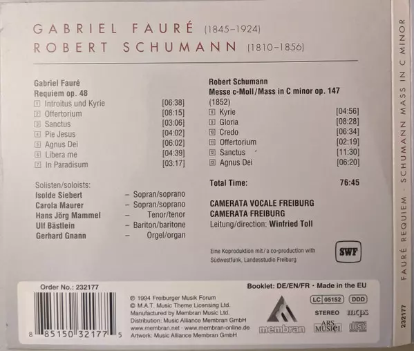 | Interpret | Robert Schumann | Gabriel Fauré | Camerata Vocale Freiburg | Winfried Toll | Camerata Freiburg |