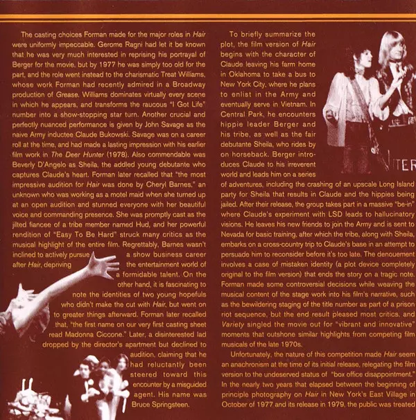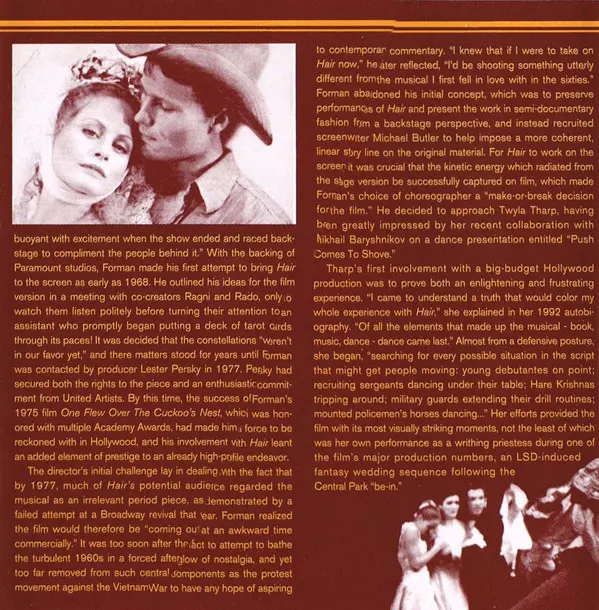 Director Miloš Forman, who won an Oscar for One Flew Over the Cuckoo's Nest (1976), created a film adaptation of the 1979 Broadway musical hit Hair. It starred John Savage, Beverly D'Angelo, Nicholas Ray and most notably Treat Williams, who was nominated for a Golden Globe Award for Best Newcomer for his role as the charismatic hippie Berger. Th...
