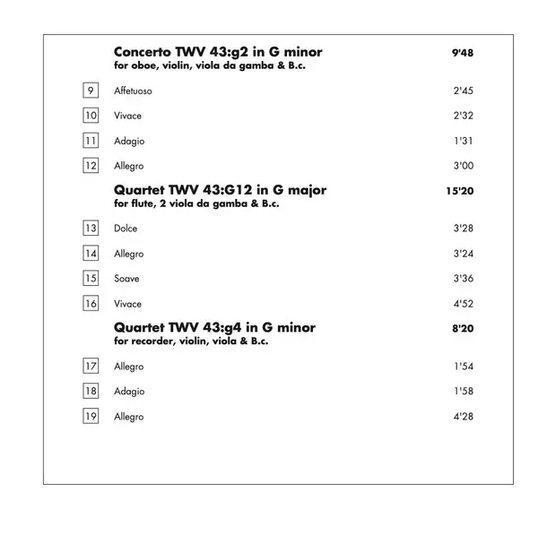 | Concerto TWV 43:G12 | 15:20 min | |