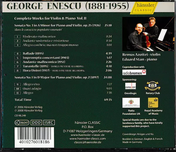 | Interpret | George Enescu | Remus Azoiței | Eduard Stan |