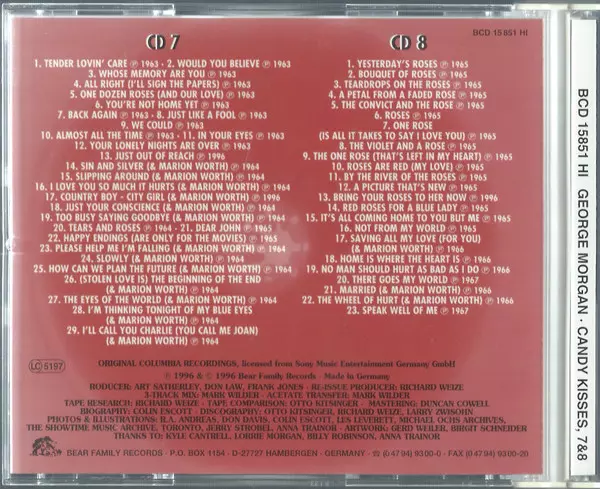 George Morgan: Candy Kisses verzia na 8CD/Box Set v štandardný edícii. Toto konkrétne vydanie vyšlo v Německu vo vydavateľstve Bear Family Records roka 2000. Album zasahuje do žánrov Pop, Folk, World, & Country a Country.